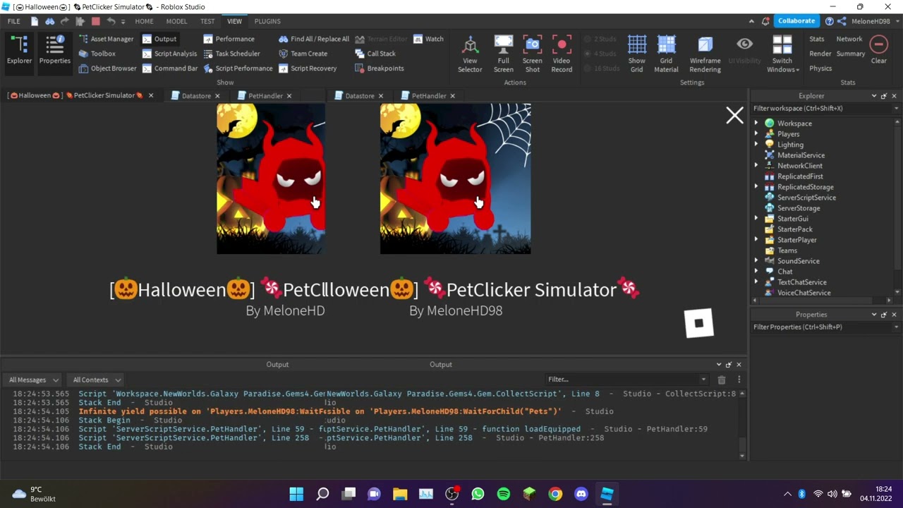 I have a bug in my Datastore script and i really need help with it. The thing is that 2 Folder named: “Data” and “Pets” don’t get added inside a Player and so the player is not able to Get Pets or even Equip them. I don’t know how to Fix it and if you need any more informations i will give them just pls help me. Here is a Video of the Situation: