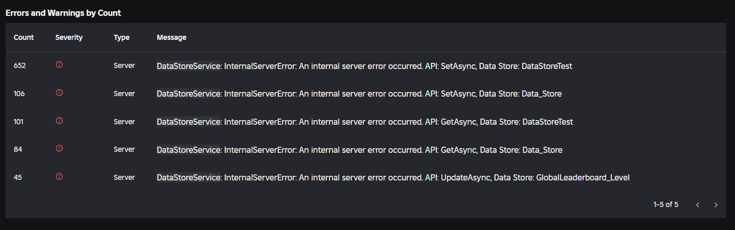 I have had this issue for a while now but I’m only reporting it now because it keeps happening. My game M.E.G. Endless Reality has been suffering from the datastore error DataStoreService: InternalServerError. I have followed what it says to do on the documentation where it says “Occasional error on Roblox servers. Try again, ideally with exponential backoff.” But still I often get reports from my community that their data randomly vanishes and some quit the game over it. This also isn’t a recent thing like I said before and has been going on for as long as I can remember. This is a screenshot of the game’s error report page from the past week. I know this error is on roblox’s end so I don’t really know what else to do besides report it as a bug.