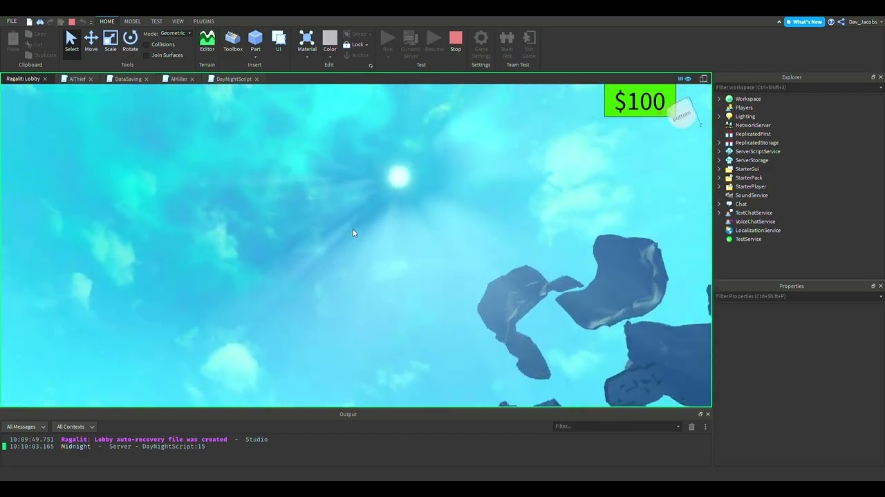 I’m using ClockTime = 24 for midnight, and ClockTime = 12 for day. Ideally, I would like to instead of this use ClockTime = 18 for midnight, and ClockTime = 7 for day, because those are the times that it actually gets dark and light. The reason I’m not using it now, is because when I tween from 18 to 7, it naturally goes backwards, instead of tweening first to 24, and then to 7, which I don’t know how to do in an optimized way.