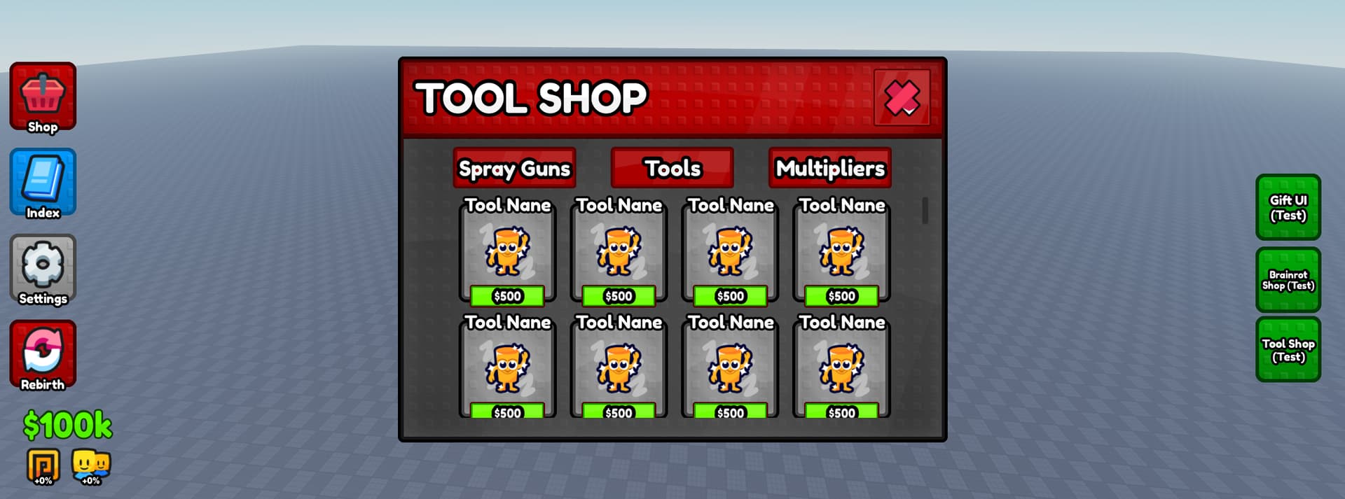 Wash Your Brainrots ! - Roblox (Worked on the UI design and scripting)