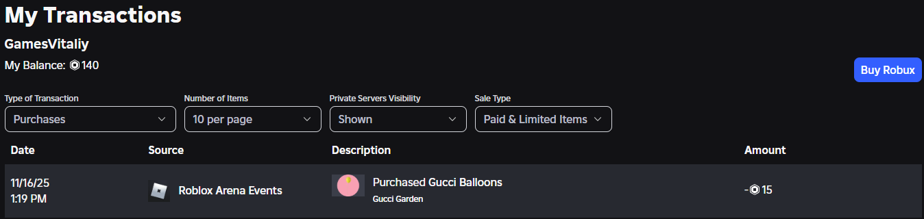 Hi. Recently, an old Roblox event called “Gucci Garden” somehow became public. I quickly joined it and bought the balloons for 15 Robux but didn’t receive a badge granting them and the item as well. I know that the event ended back in 2021 or 2022, but bro, I spent my Robux to get the item which I didn’t receive.
