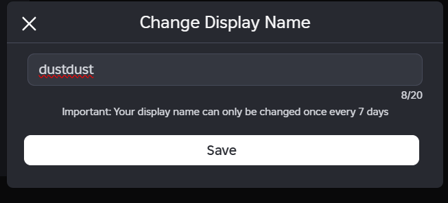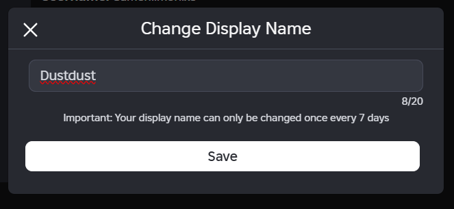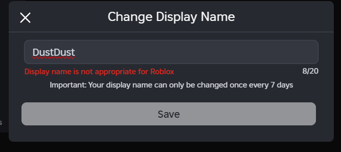 So about 4-5 months ago you could use the display name “DustDust” without any issue but now its marked as inappropriate for some reason. I believe this to be an AI filtering bug because I don’t know how it can be inappropriate.