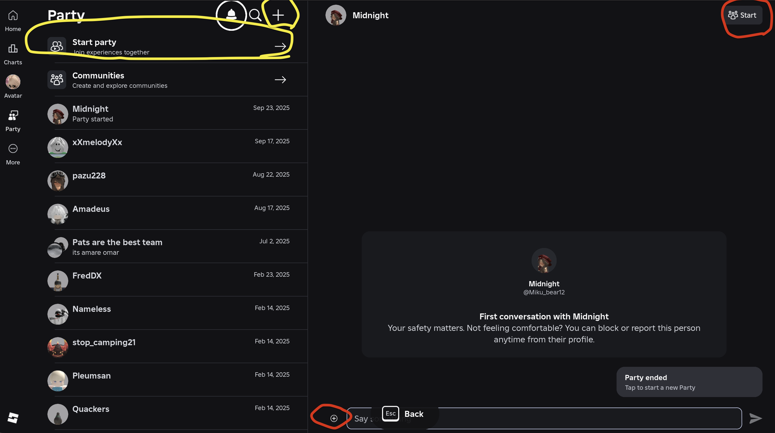 Red is for creating/joining a party with a selected user