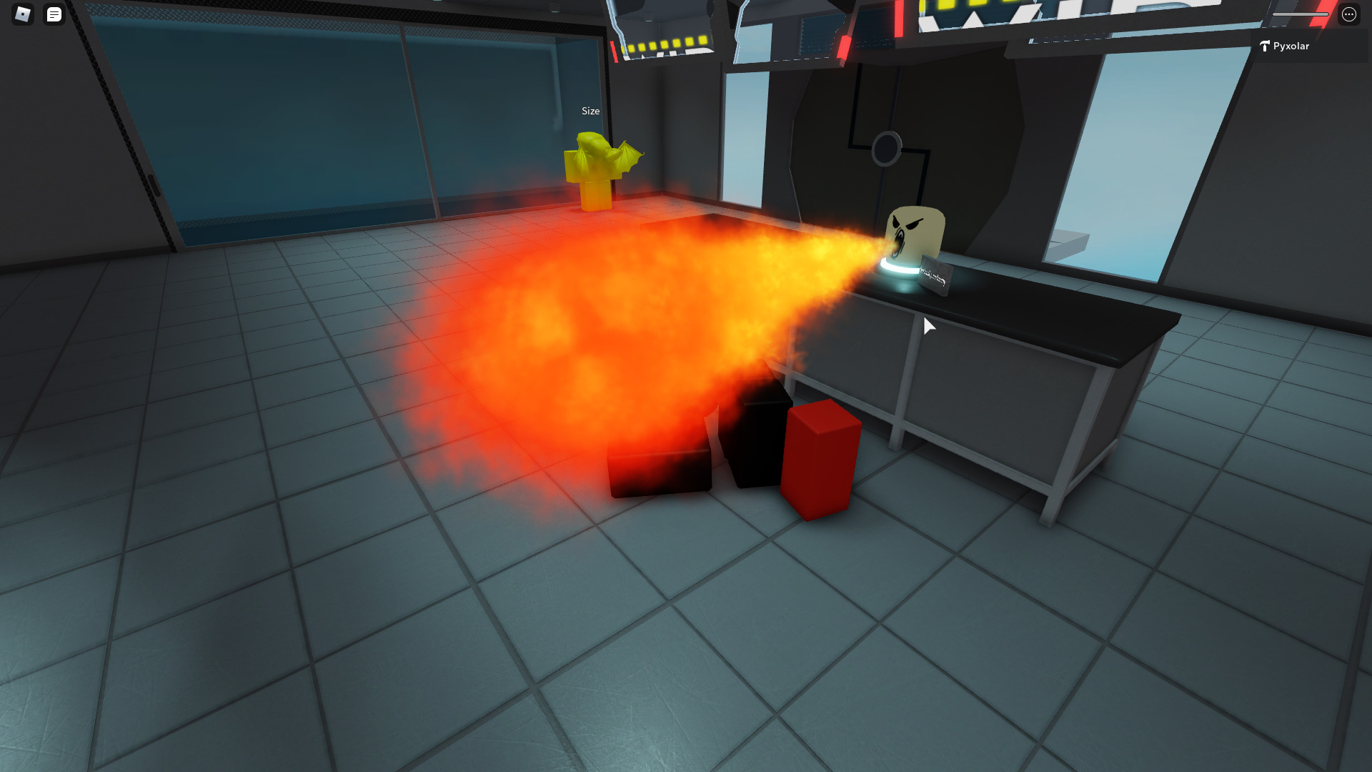 The game’s lobby simply is a futuristic lab. (Don’t mind the yellow being in the background)