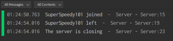 It should print something when you join, leave and when the server closes now. Here’s what my output prints out when I join and leave in Roblox Studio: