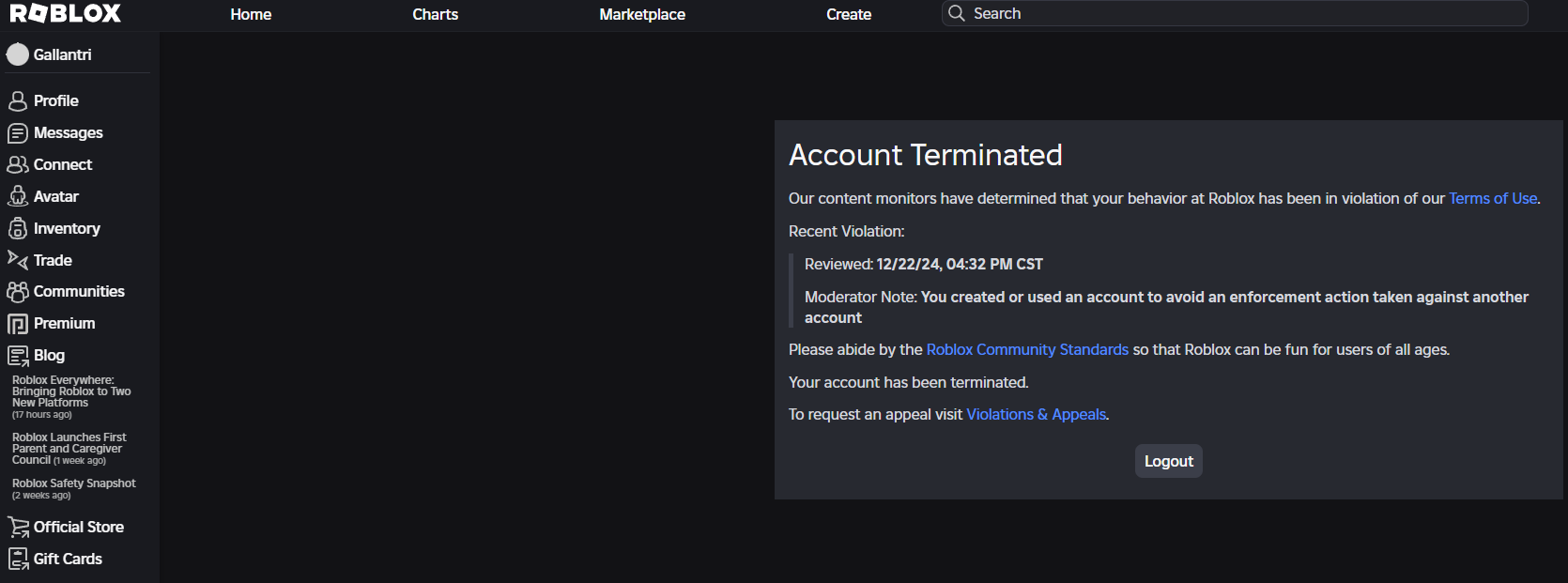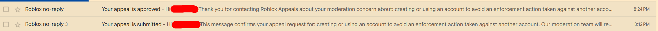 Dear Roblox Moderation Team, I am reaching out to appeal the termination of my Roblox account, [Username]. For avoiding moderation via making an alternative account. I believe this moderation must be a mistake. My siblings and I all play Roblox and share the same IP address. My brother has had his account terminated in the past, which may have caused confusion and led to my account being falsely flagged for evading moderation. However, I want to clarify that I have not created or used any alternate accounts to bypass moderation actions. I kindly request a thorough review of my case. Thank you for your time and consideration. I appreciate your assistance in resolving this matter. Than You, [Name].