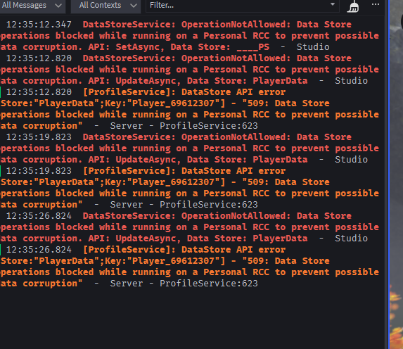 This error happens both in studio AND in game, and started popping up around 3:30, and now has around 300,000 errors in our analytics. I do use ProfileService but it’s clear that this issue is beyond that.