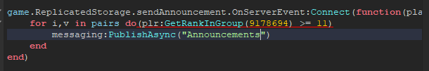 game.ReplicatedStorage.sendAnnouncement.OnServerEvent:Connect(function(player, msg)