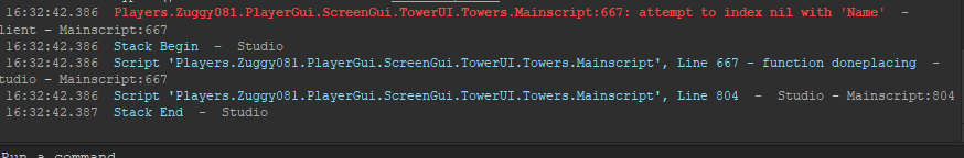 when you click the tower you want to place client side creates the hitbox and the range part and creates a copy of the tower for only the client side, i need the server side to create it so it can actually be placed into the game, but no matter how to try to refer to the tower i come back with nil
