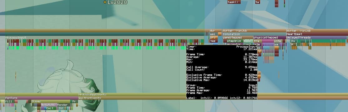 Thank you for the detailed report! It looks like processInput is taking a significant amount of time in some cases. I’ve added this to our backlog to investigate.
