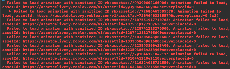 Alright first off let me say, yes I used my group to upload these animations, and yes, I have ensured the ID to be proper for each animation. I am currently attempting to use the Cooldeath musket tech if you know what that is, and I have a persisting issue with my uploaded animations which is each time I run the game I get the same error