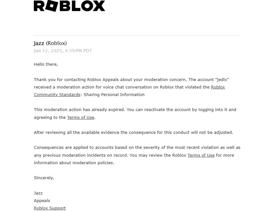 just reply to the ticket saying that the voice chat violation isn’t what you are appealing for (giving PII false-positive). Had this same issue before. And try to describe this issue to the support as much as possible
