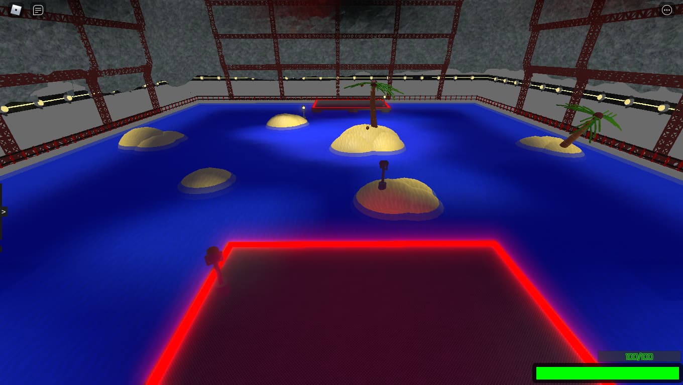 Description: A simple game of sharks. There are two platforms on each end for the “minnows” to go back and forth to. There are multiple islands in the map that allow for the minnows to be safe. There are also 2 hidden underwater tunnels on the sides.