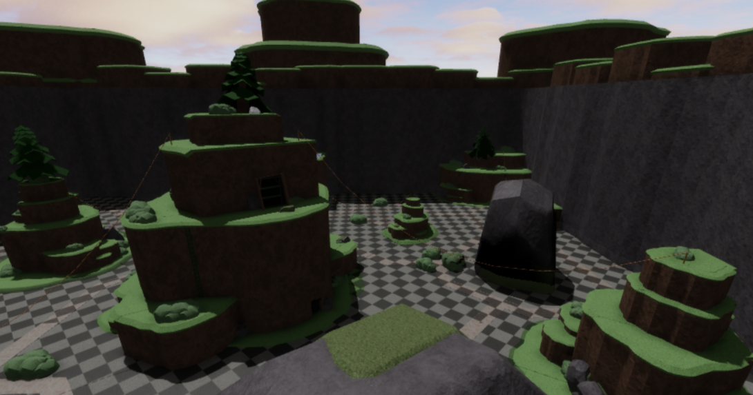 Seems a bit too small in my opinion or maybe small isn’t the word if there’s going to be more added to the map. I think its like the check board floor being too open. It would be a huge problem with a game like this but might not be much of a problem in a paintball style game or a fps kinda game.