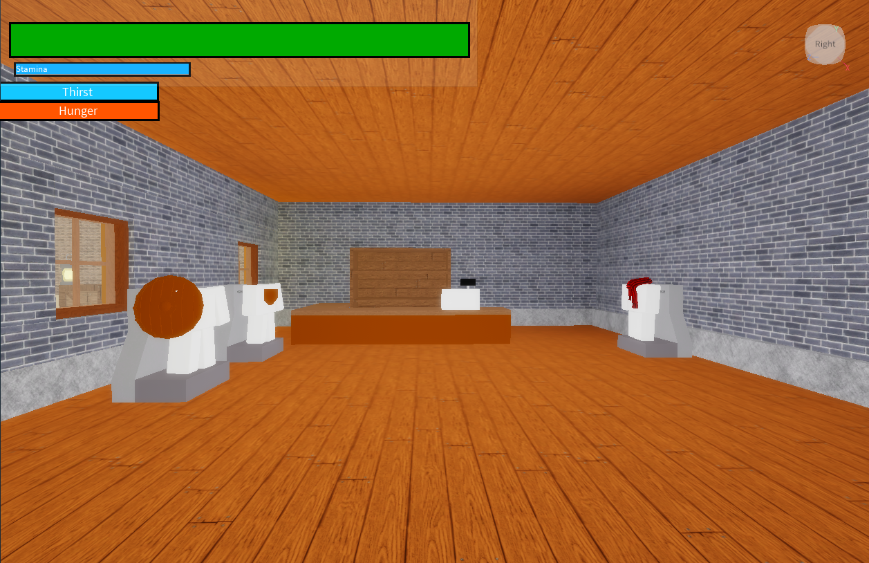 I had shown what I had done earlier, but now I’m done with the build (not the functionality). I added some props outside, some NPCs to make it feel a bit more alive, Klein the guitar player, some lanterns, and added stuff on the inside. 95% complete (the build anyways)