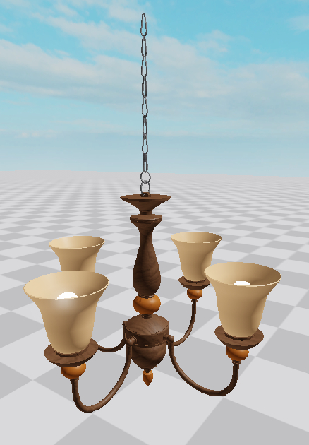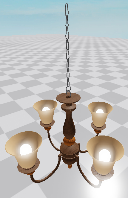 Note: I’ve went with an old chandelier, and kept 4 arm instead to lower the poly count.