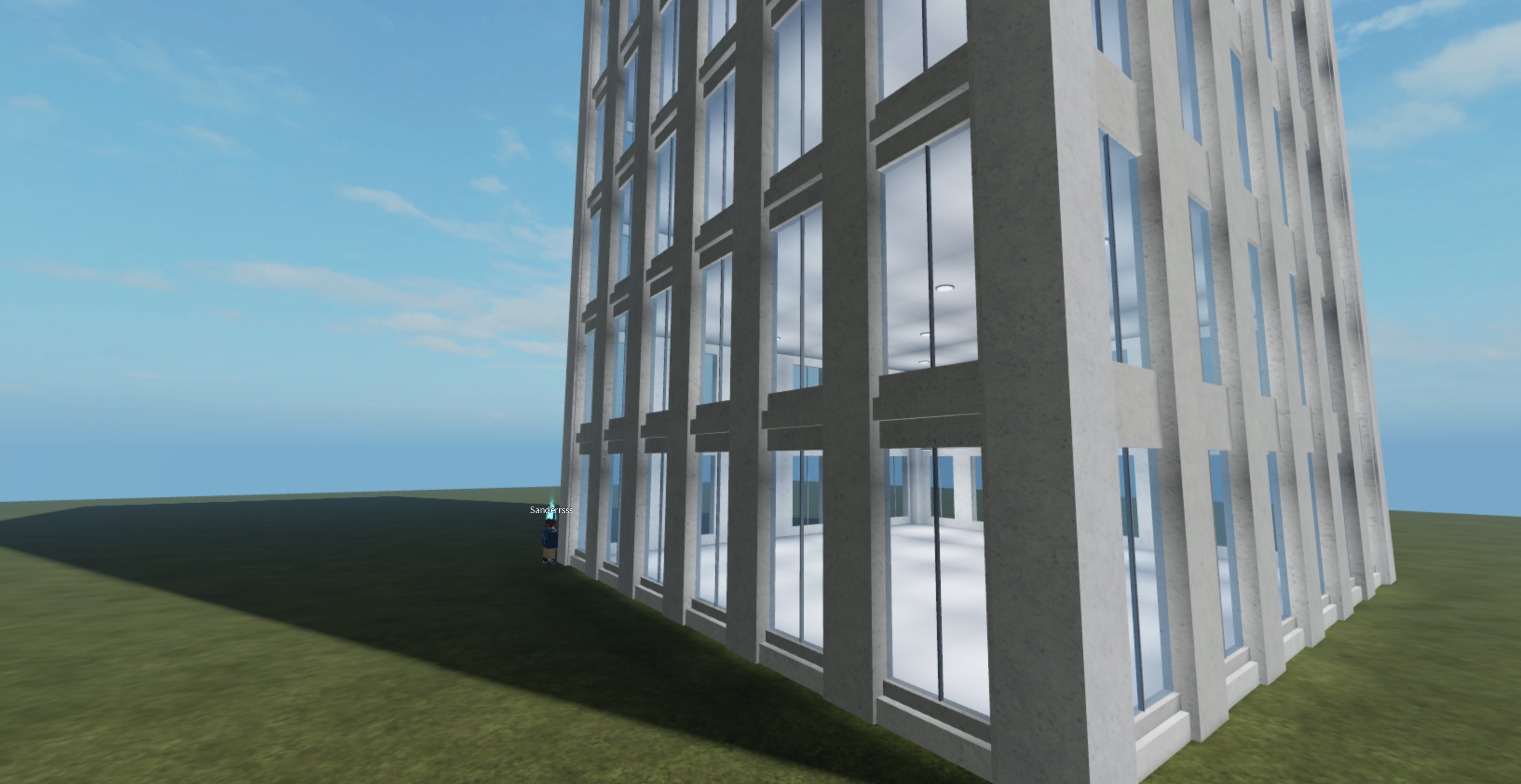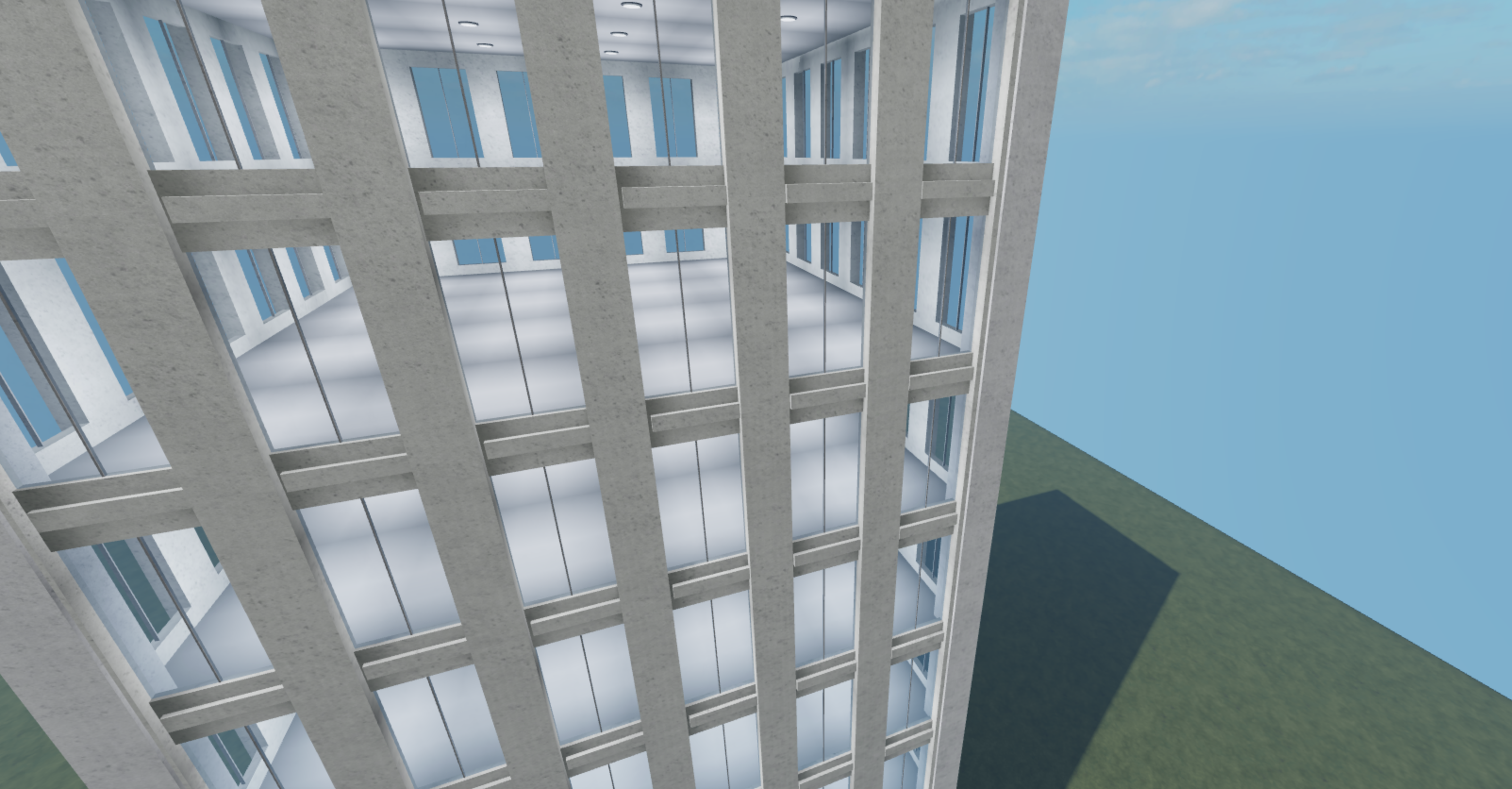 And do you intend for people to go inside and spend time inside the skyscraper? If you make a city with many skyscrapers with transparent windows it will look a bit weird. Try making the glass less transparent, or opaque in that case.