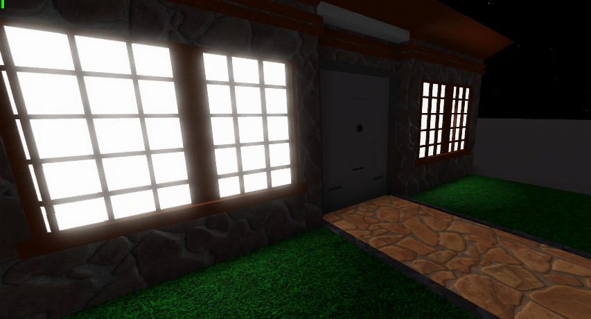 This looks overall really nice, I suggest adding a door knob, frame to the bottom of the door, and most doors are lighter than the house color, so I would suggest making it a bit lighter. Good job though!