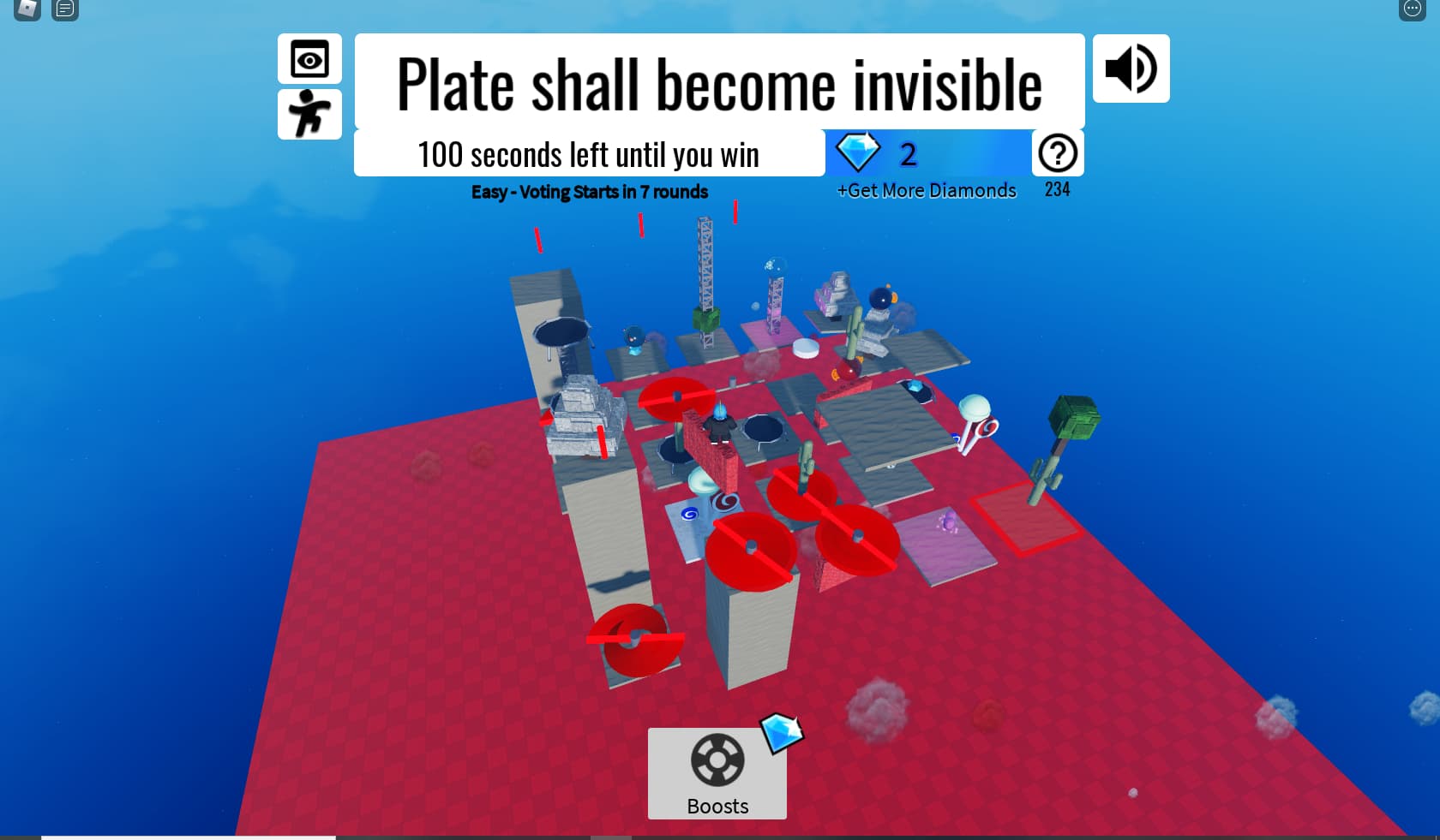 You are on twenty-five randomly changing plates, and your goal is to survive 2 entire minutes.