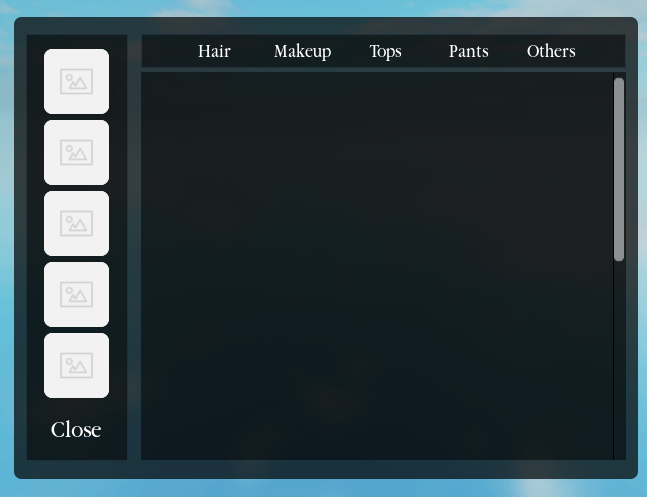 The buttons for hair/makeup/tops etc look too close together, maybe make a little outline for each button. Great work!