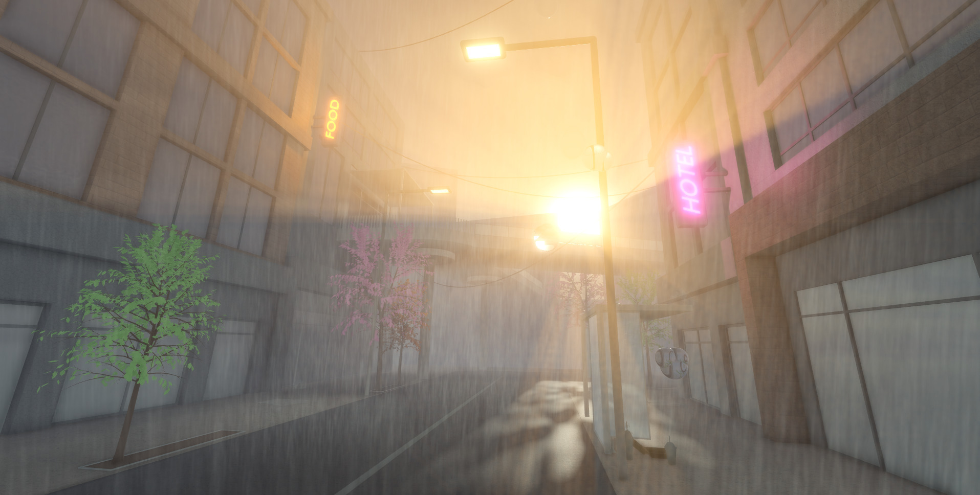 Wow! Looking really good, only thing would be to add a bit more detail. Maybe some depth on the planters too rather than them being flat and inline with the pavement.