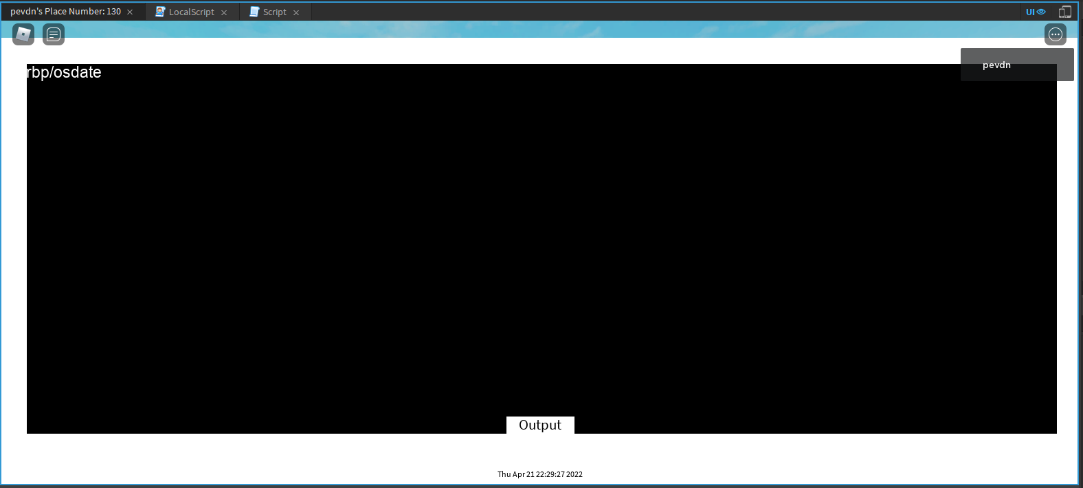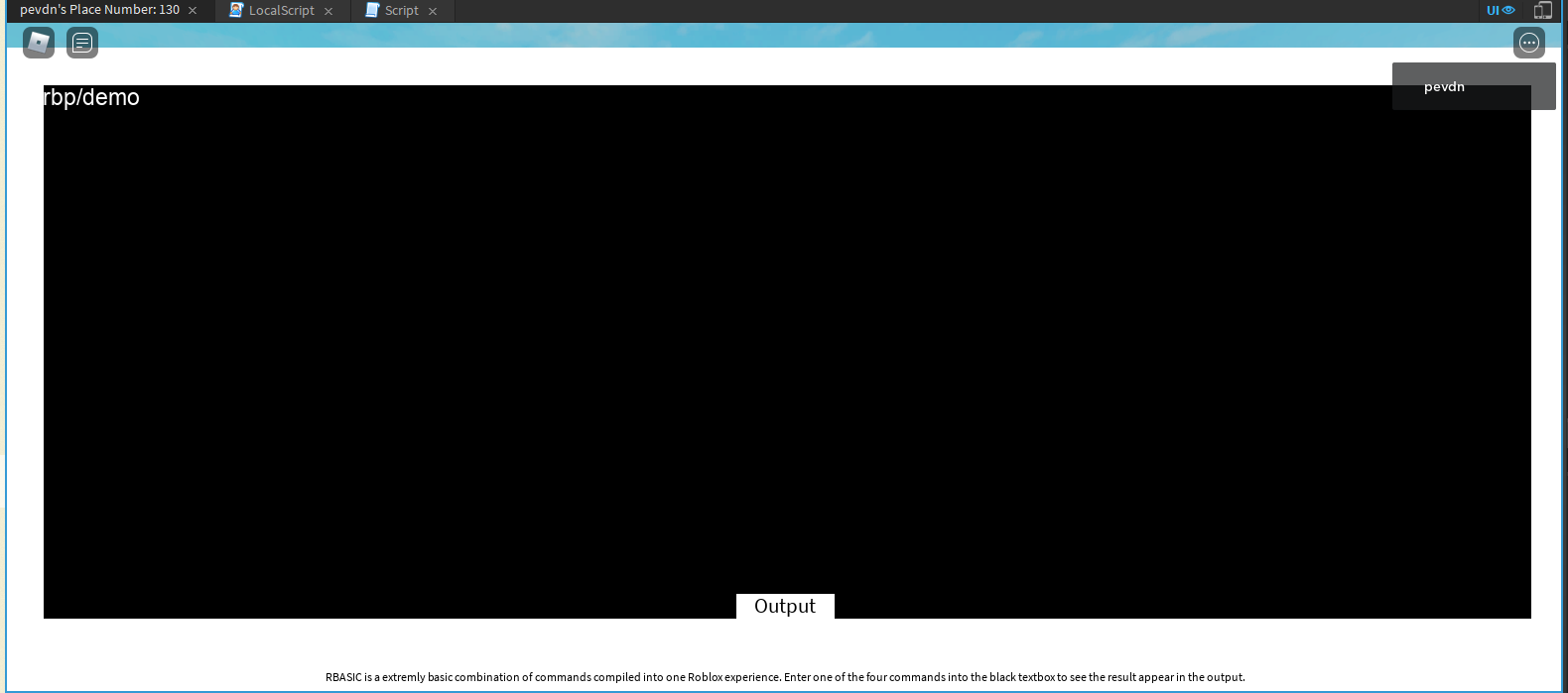 The simulation is a compilation of commands that can all be used to return values to the in-game output. It is mostly useless but it was a good exercise for my skill and I hope to add to it in future. When it gets more mature, I plan for the scripts to be available for OS simulations- OS’ in ROBLOX as some try to recreate terminals but get caught up in other projects… As you can see I can still access it through studio and show you what it was meant to be about.