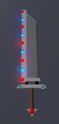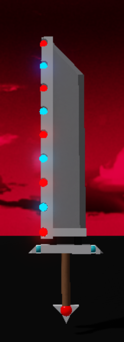 I think the weapon could have a few improvements, especially the handle. Also, I would try different color combinations with the blade instead of just red/blue. I would focus on improving the look of the handle first then move on to adding more details.