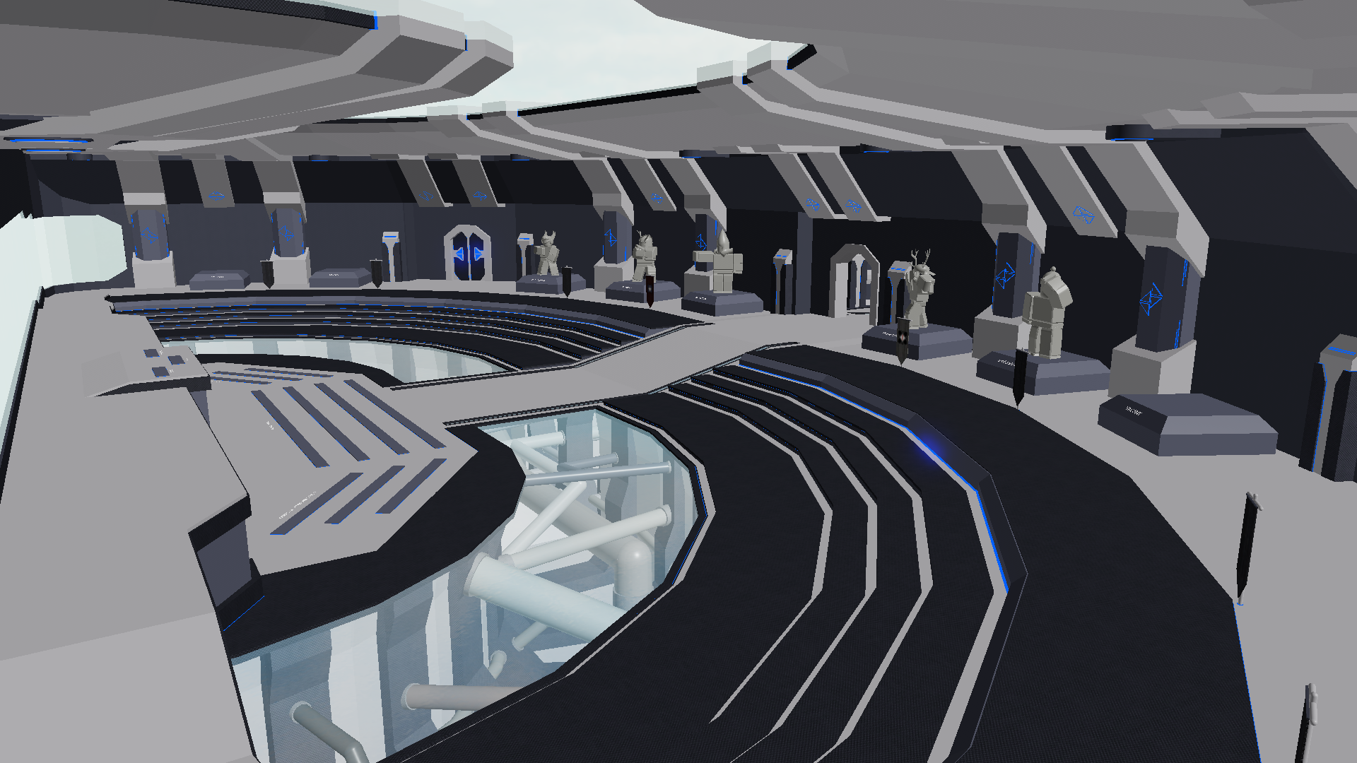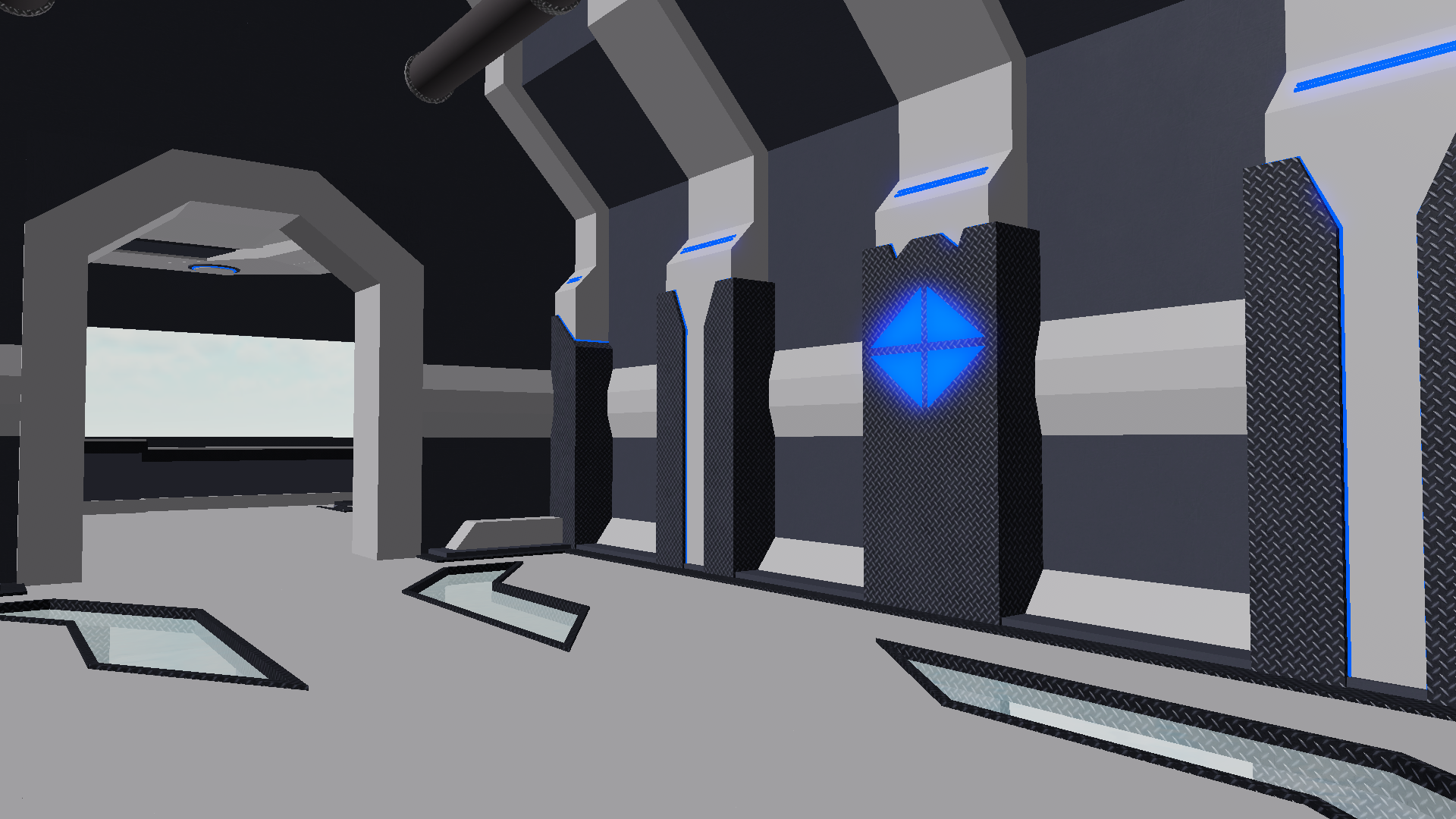 Wonderful! I love the whole sci-fi/technological style facility, I love the fact that you have added pipes under the glass floor rather than just leaving it plain. I also like the choice of colors and materials. I cannot think of much that you could improve on but there is still something that I would suggest adding/changing: