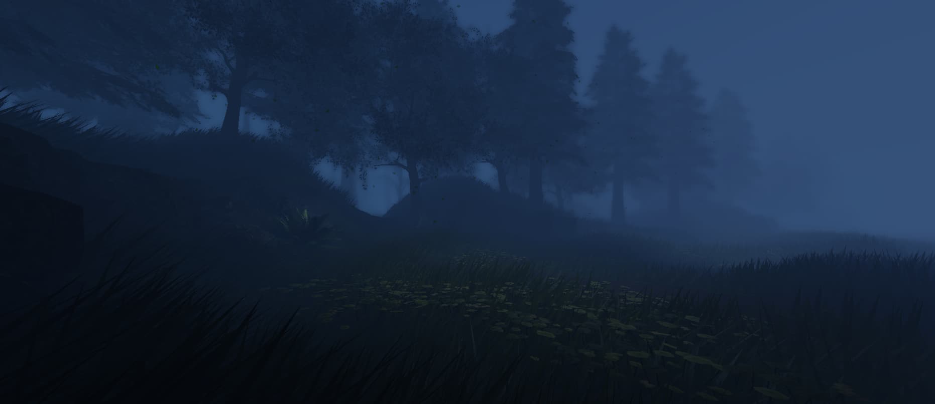 This forest build looks great! Good job on it! Since it is a horror game, it’s dark which is good, but maybe it should be a bit brighter wherever the player is at so everything is more visible.
