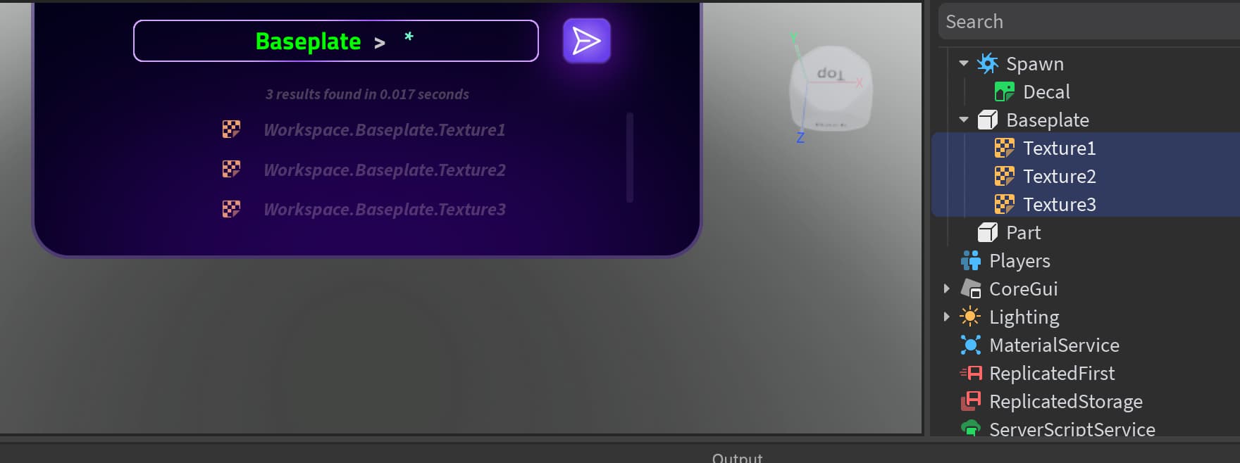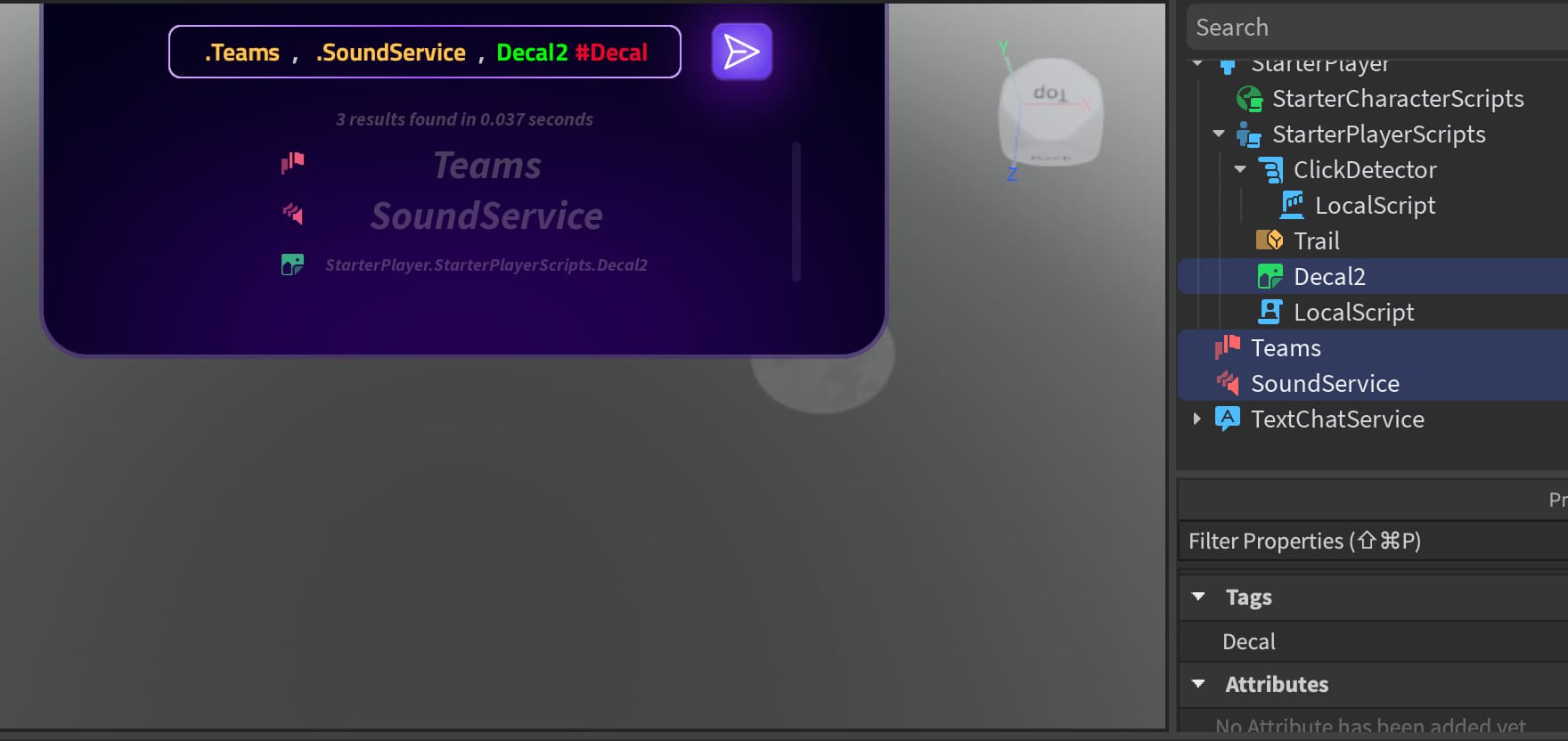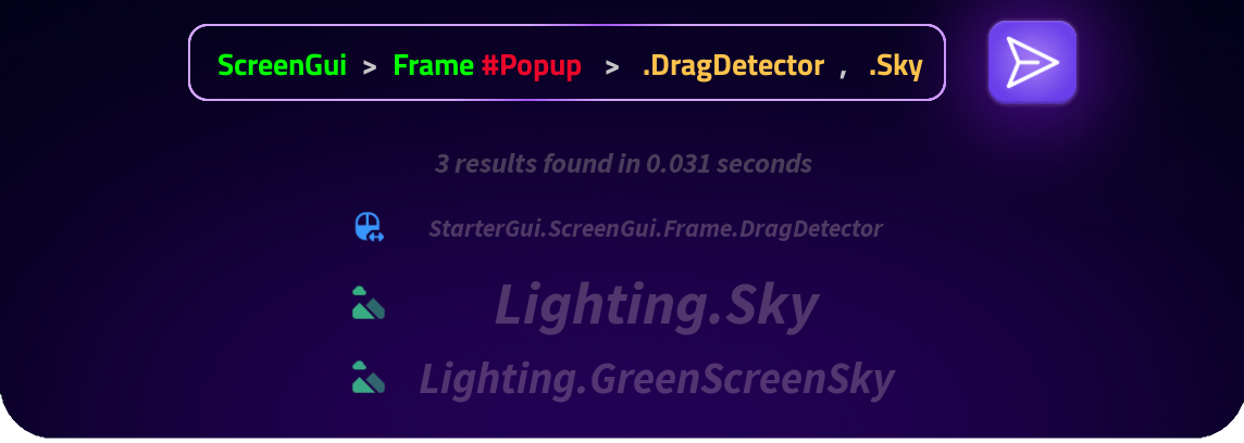 .<Class> - Match: find any instance with that type (or class, es: Part, Script, ScreenGui…).