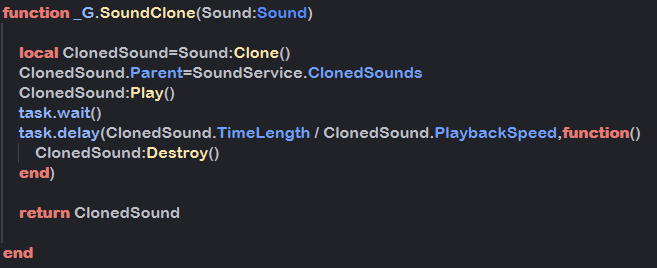 replaced task.delay(ClonedSound.TimeLength / ClonedSound.PlaybackSpeed),function() with ClonedSound.Ended:Connect(function() - this should probably work for now