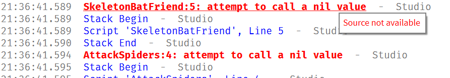 Every error happens from “Studio”, so it’s filtered under “Studio” in the output tab.