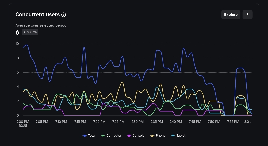 However, I can join my game’s subplaces and other games too. This has been happening for months at this point. The issue persists for a few minutes, which can tank my CCU.