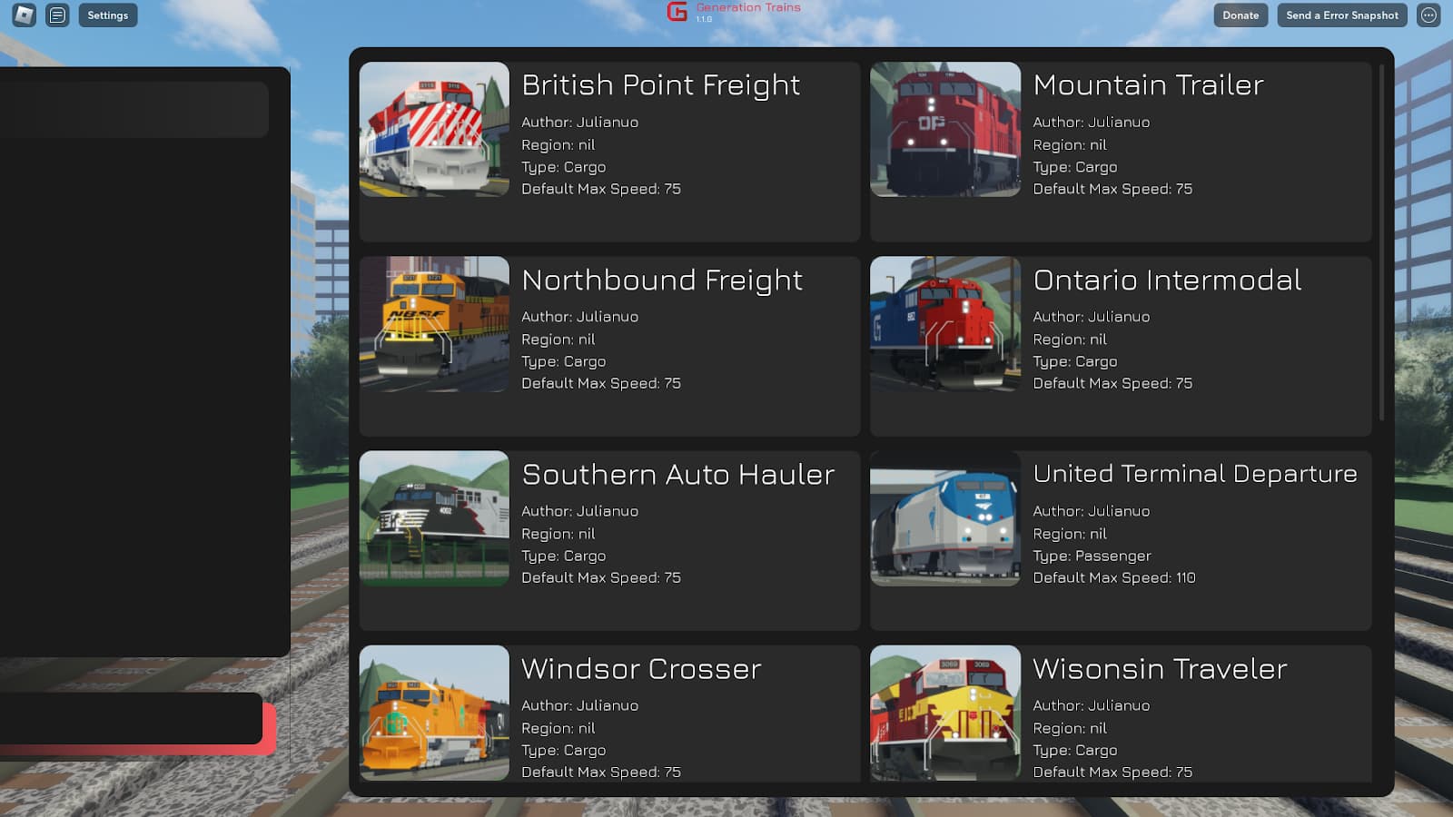 Hello and welcome to the next generation of Roblox Freedrive Railroad Simulators, Generation Trains, have a seat, relax and enjoy endless fun driving your favourite trains around one of the biggest virtual worlds amongst Roblox train simulators.