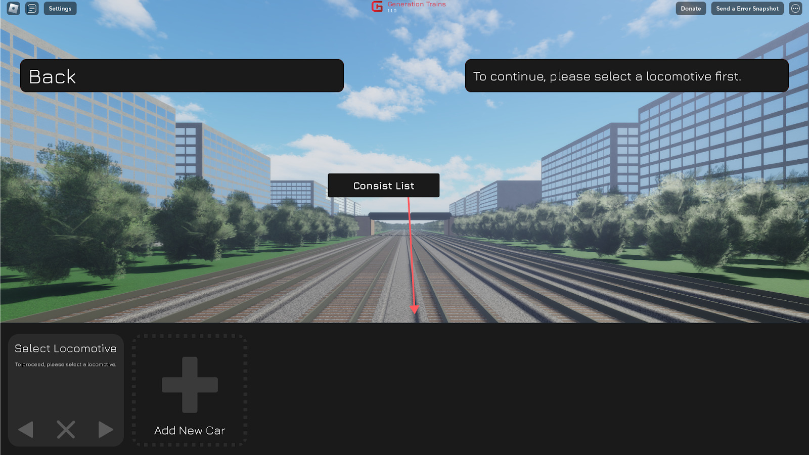 First what you will see is a Consist Line, this line will show you your selected consist. You can add new cars, or edit already selected ones. You can also remove them and move their places to create a perfect train! Before you will be able to add new cars or spawn a train, let’s select a locomotive first