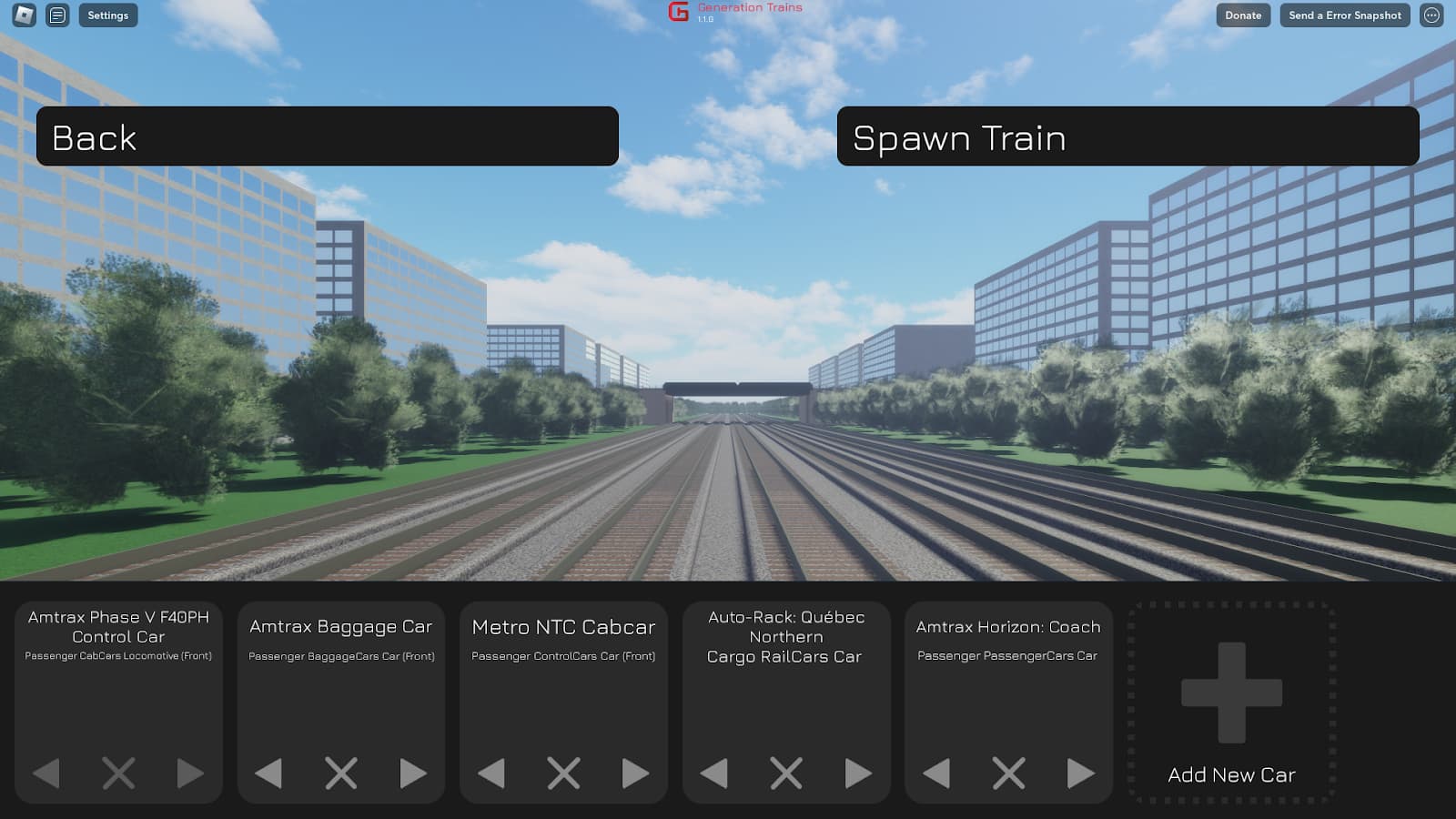 This button will open a train spawner that will be covered later on. There you can choose your train or create it from scratch. -