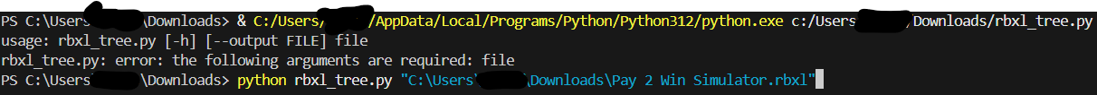 python [rbxl_tree.py directory] [.rbxl file directory]