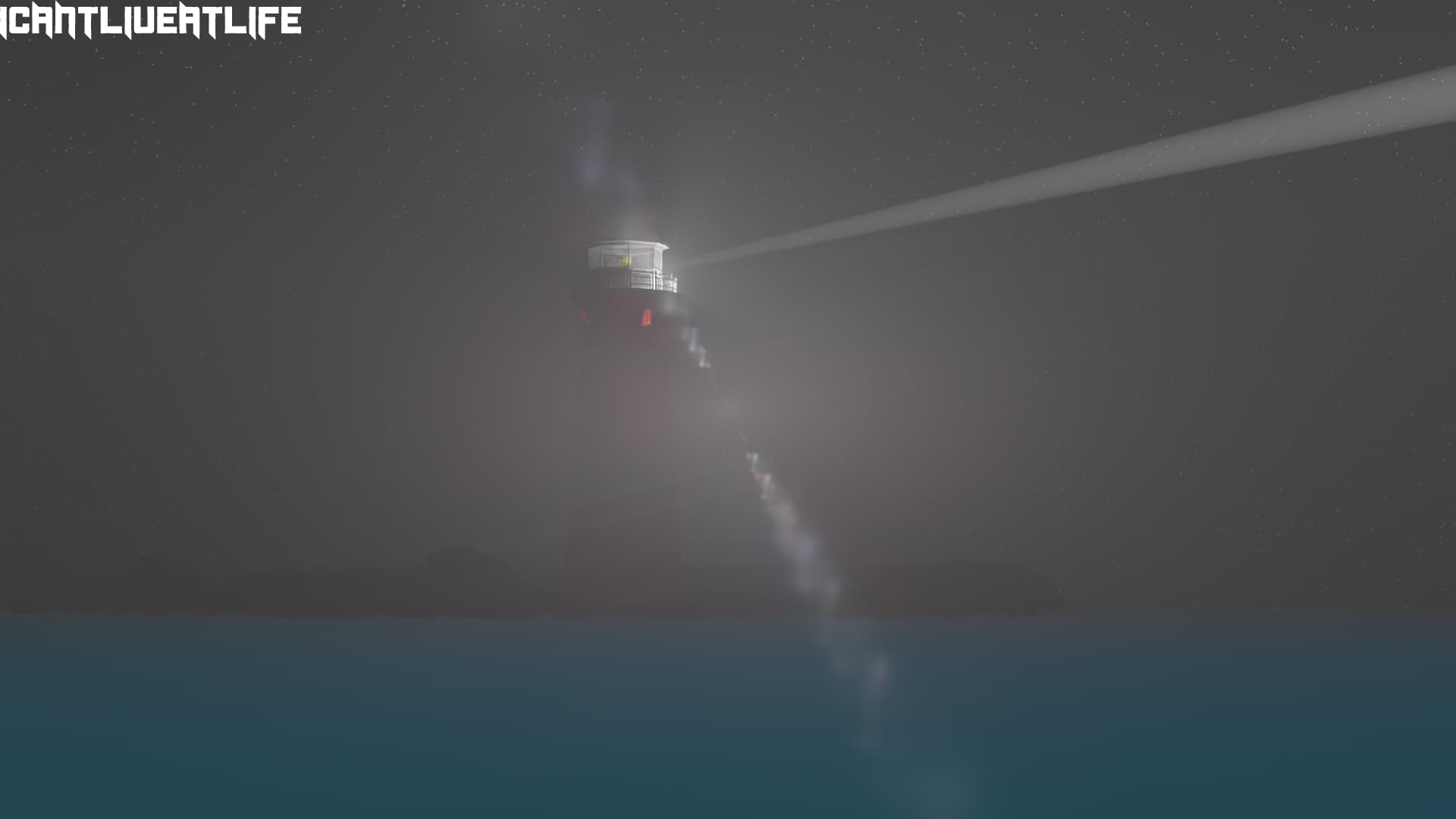 The beam of light is a cylinder shape. I added a material to it that made it look like a a beam of light in the fog. Although it honestly doesn’t look that good, I think it needs to either be brighter, or smaller and more straightened.