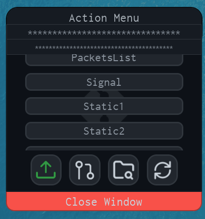 At last, it is time for the settings button to shine (Figure 20) ! When you click the settings button, you will open the Settings Window (Figure 21). This window contains information about branches, which we will dive deeper into shortly. The Settings Window, just like the Work Window, can be closed by either clicking the button a second time or clicking the “Close Window” button (Figure 22) that I neglected to mention earlier.