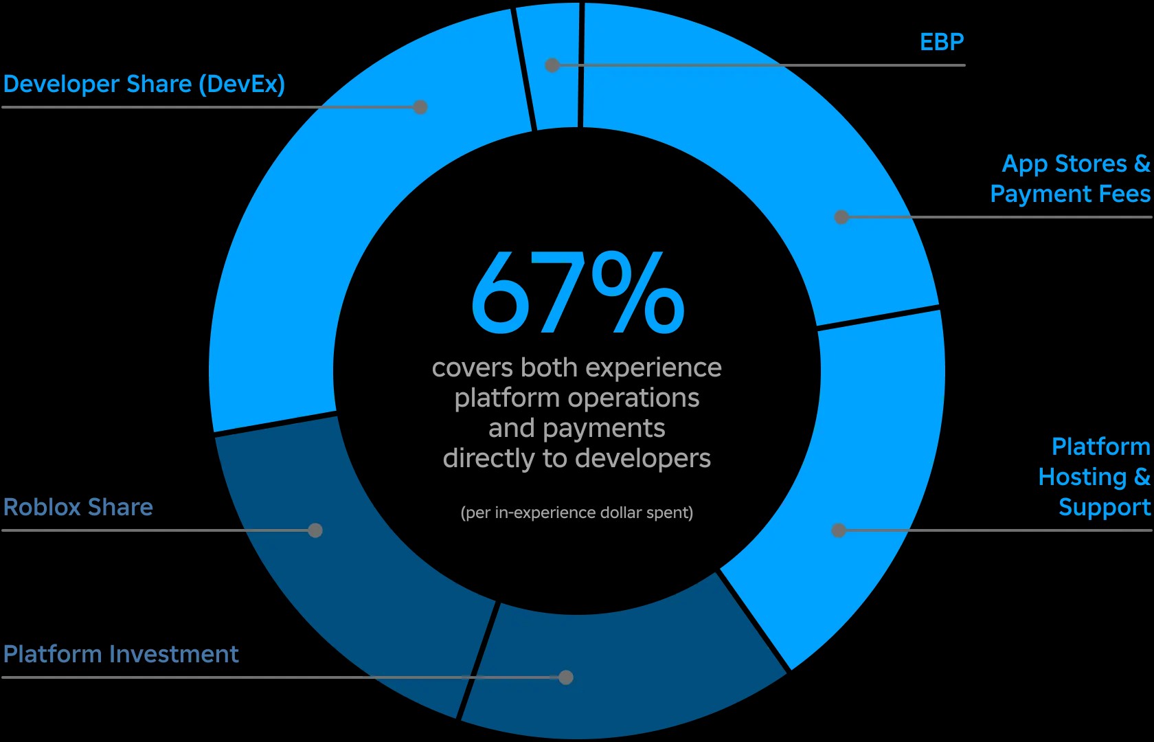 Of these, only the last two do not directly contribute to the functioning of Roblox and the payment of developers.