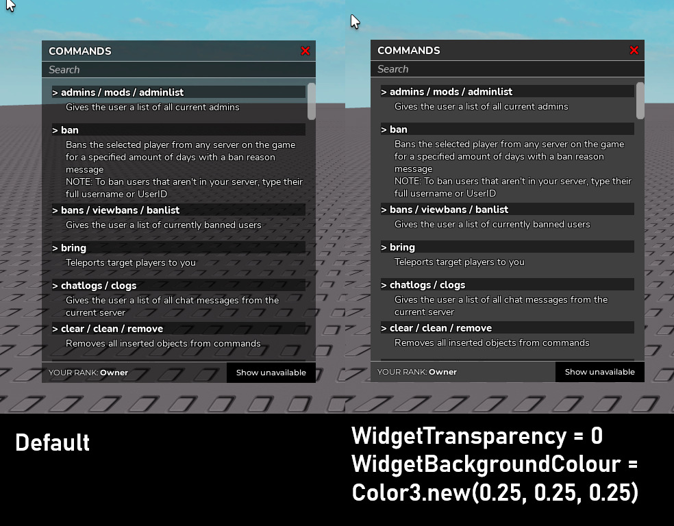 RankRequired = nil, -- SET A RANK TO ENABLE (such as Roles.Moderator)