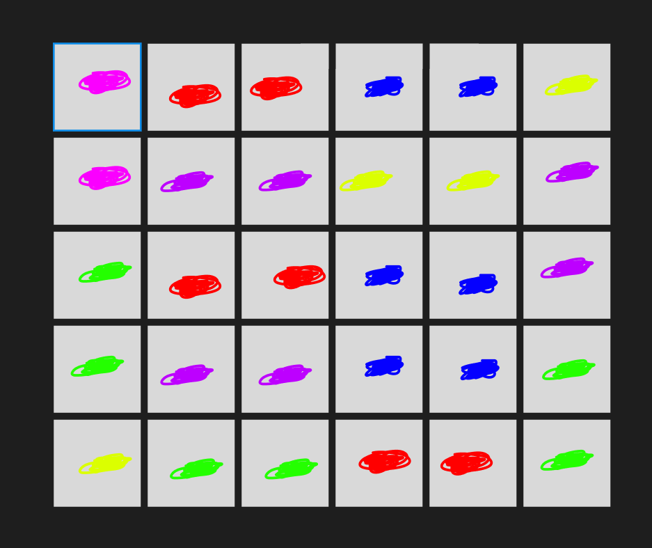 table.insert(unrandomizedColors, color) -- for every color, insert into a table every time that color can exist in the grid, e.g., a 4x4 grid with 2 colors has 8 of each color, we insert eight copies of each color in the table