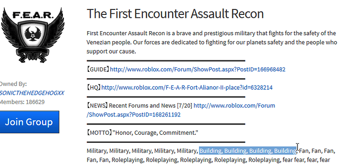 imo anyone who intentionally exploits their population algorithm like that should have their description content deleted and the group leader should receive a warning, but apparently ROBLOX doesn’t care about it that much.