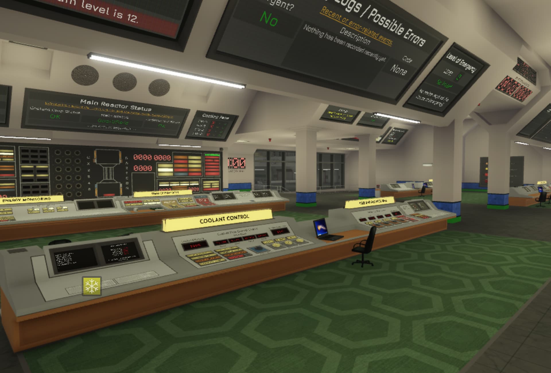 - Replaced the raised floor parts of the main reactor’s control room with an office and a records room
