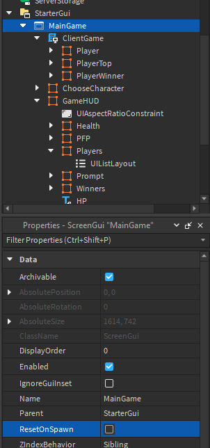 I have a local script that fires a server event to my server script when the player’s health is <= 0, the problem I’m having is my code is saying that the Frame is not being found but I cannot figure out why. I’m using an alt account on my phone and when in-game I’m resetting the player on my phone, which is TedsTestingAcct. What I want to have happen is for the “Dead” text at the top to become visible for the players.