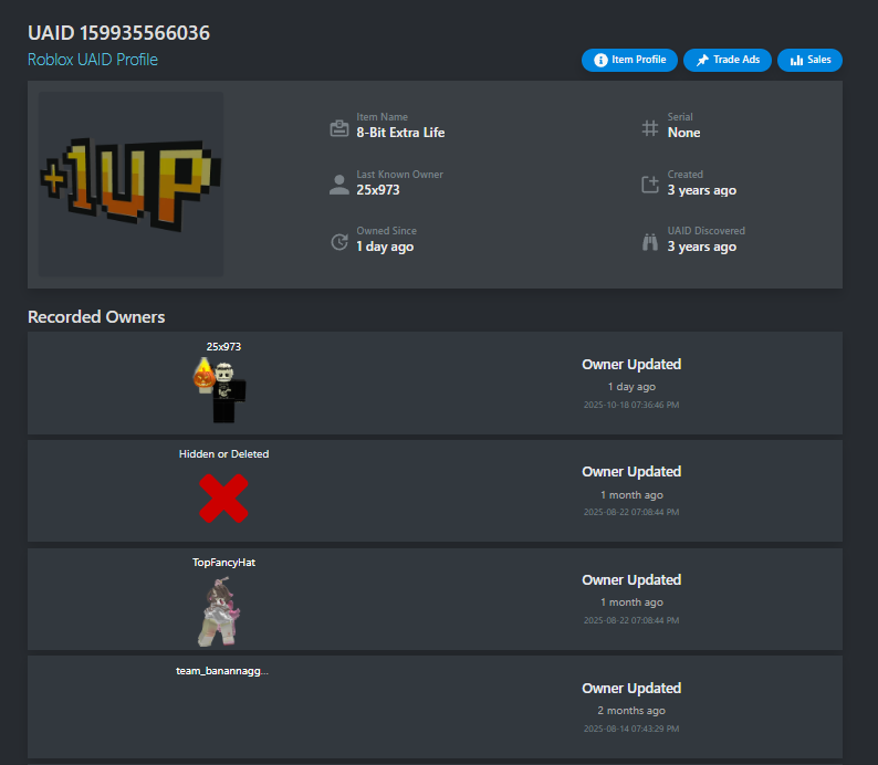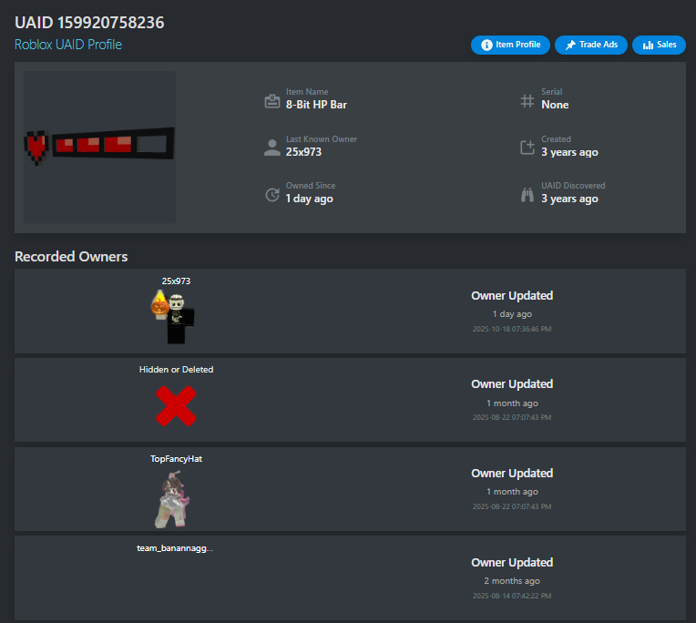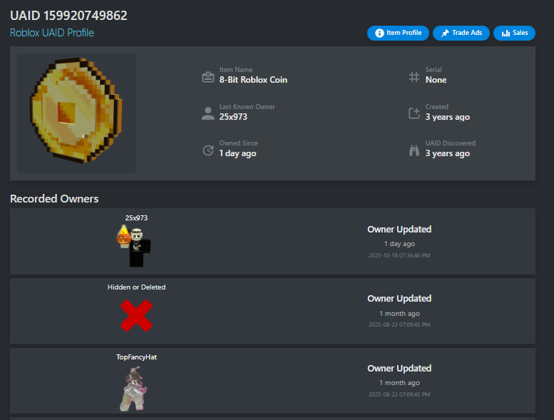 At the moment he stole 4 Limiteds from me I’m not sure what else from other games I play. He removed my friends and turned my account offline. This is the second time someone has hacked me all just to steal the 8-Bit series but my permium ran out. So for all I know since he hasn’t got all my limiteds he could be stealing from me in da hood skins or grow a garden pets.