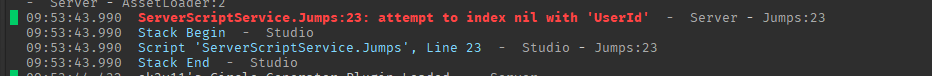 The script is in ServerScriptsService and its name is Jumps if that can help