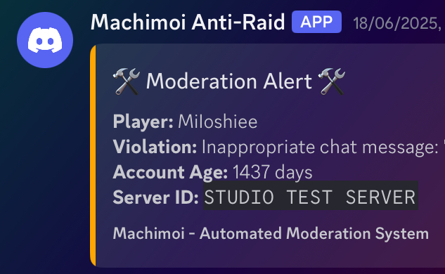 I do link a screenshot from a bypass detection from my Auto-Mod script I worked on. Server ID included.