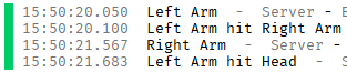 print(arm.Name.." hit "..otherPart.Name)