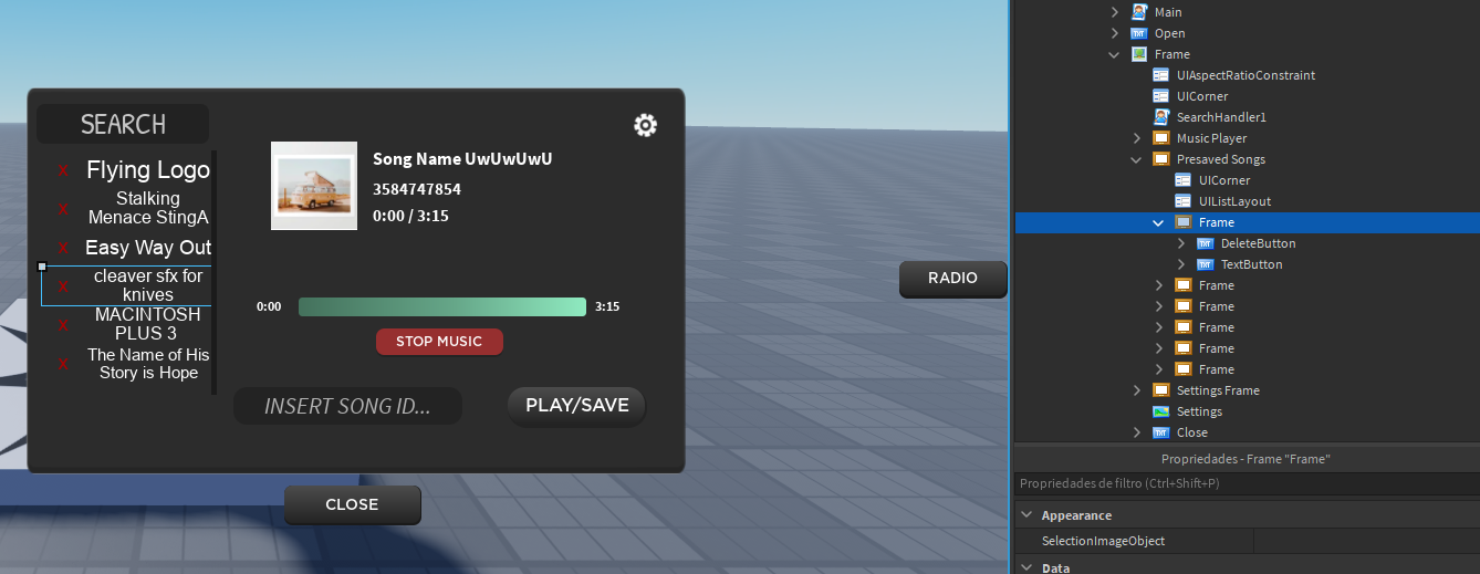 I use this SEARCH in an animation script. Where the TextButton is inside the ScrollingFrame. But in this case of the radio, the textbuttons are inside a Frame within the ScrollingFrame.